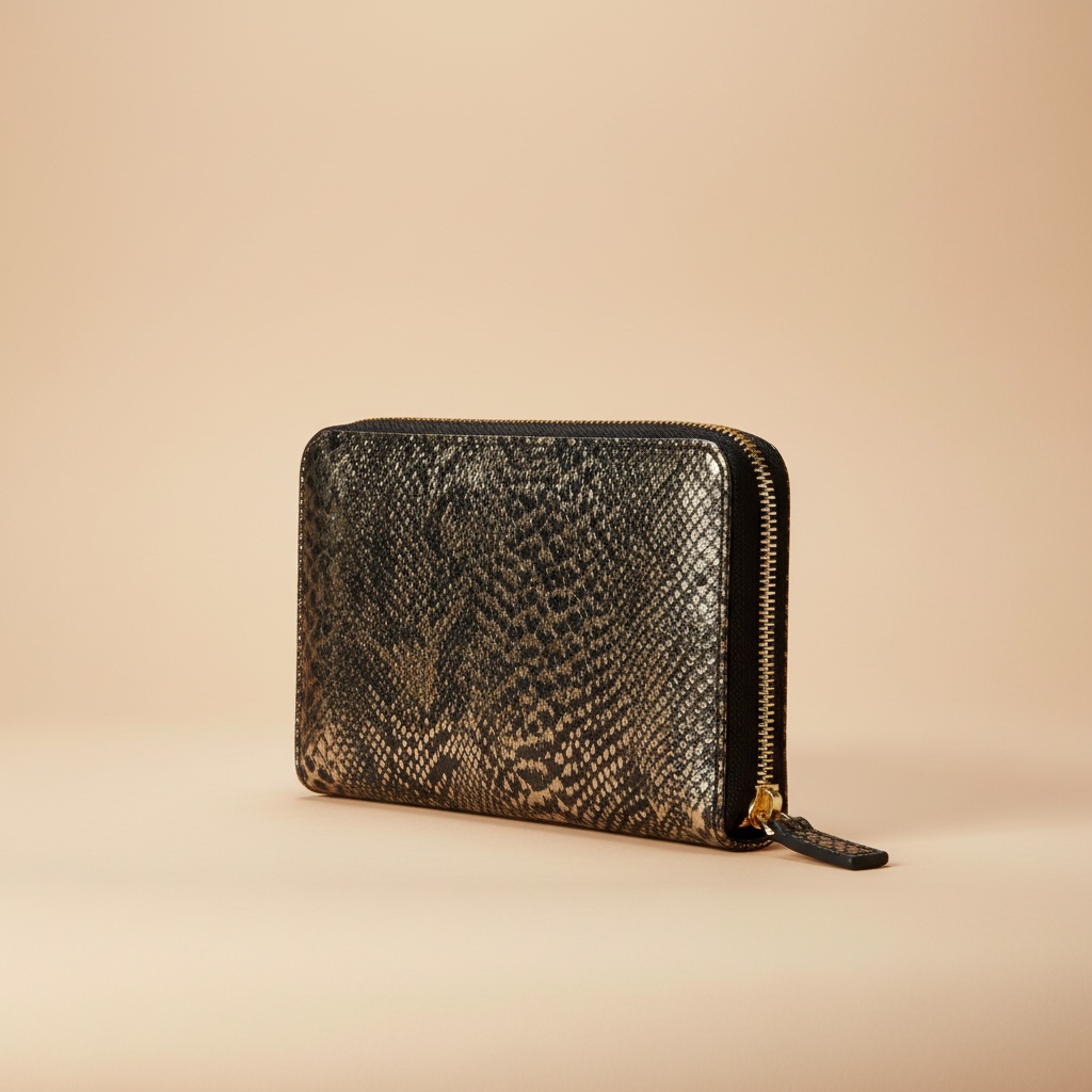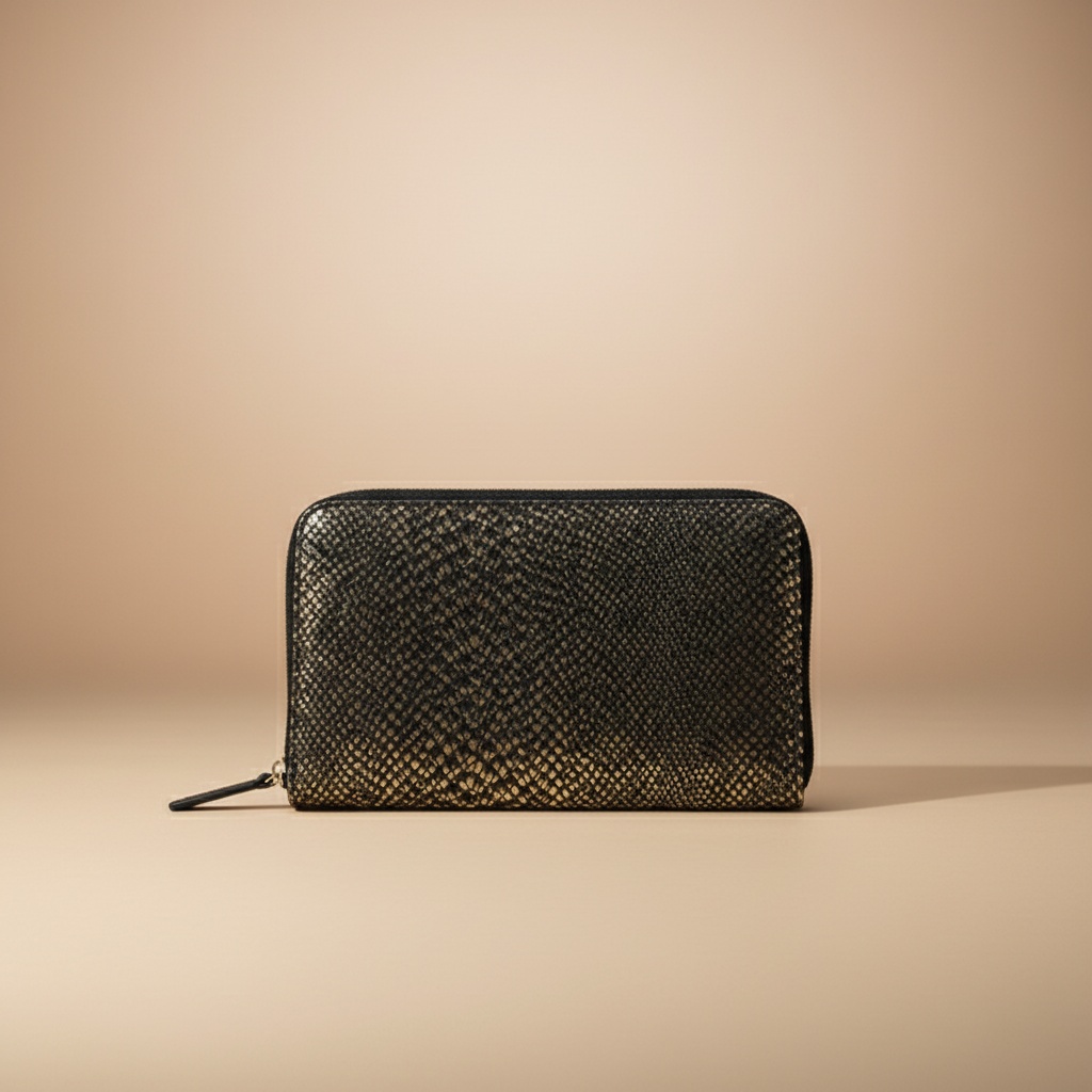 Élevez votre style avec le Porte-monnaie Iris Prestigieux. Fabriqué en cuir à motif écaille de reptile, il offre une texture luxueuse et un aspect brillant. Idéal pour organiser vos essentiels avec élégance et sophistication.