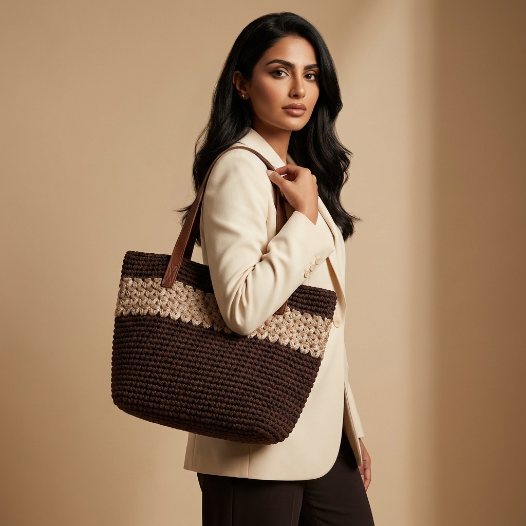 Le Sacs à main en crochet Fès Éclat incarne l’élégance fluide et le savoir-faire authentique. Fibres tressées main et anses en cuir offrent un confort intemporel. Ce cabas luxueux, aux textures uniques, est l’accessoire éthique parfait pour sublimer votre style raffiné.